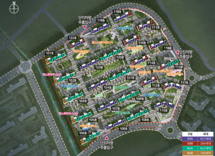 | 전용면적 | 59㎡ - 1,103세대, 84㎡- 742세대 |